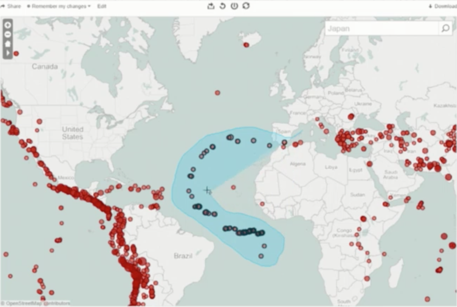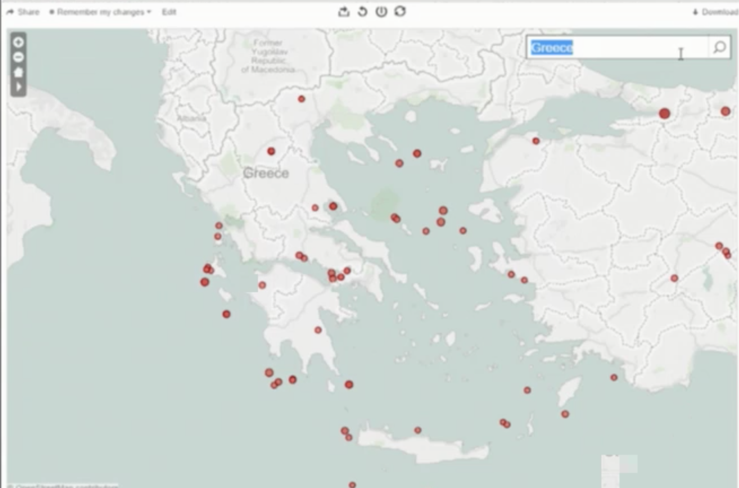 You can type in any geographic data point and the view will focus on it. Typing Greece zooms in to Greece on the map. And Country is not even part of the data. The geographical knowledge has been built into tableau.