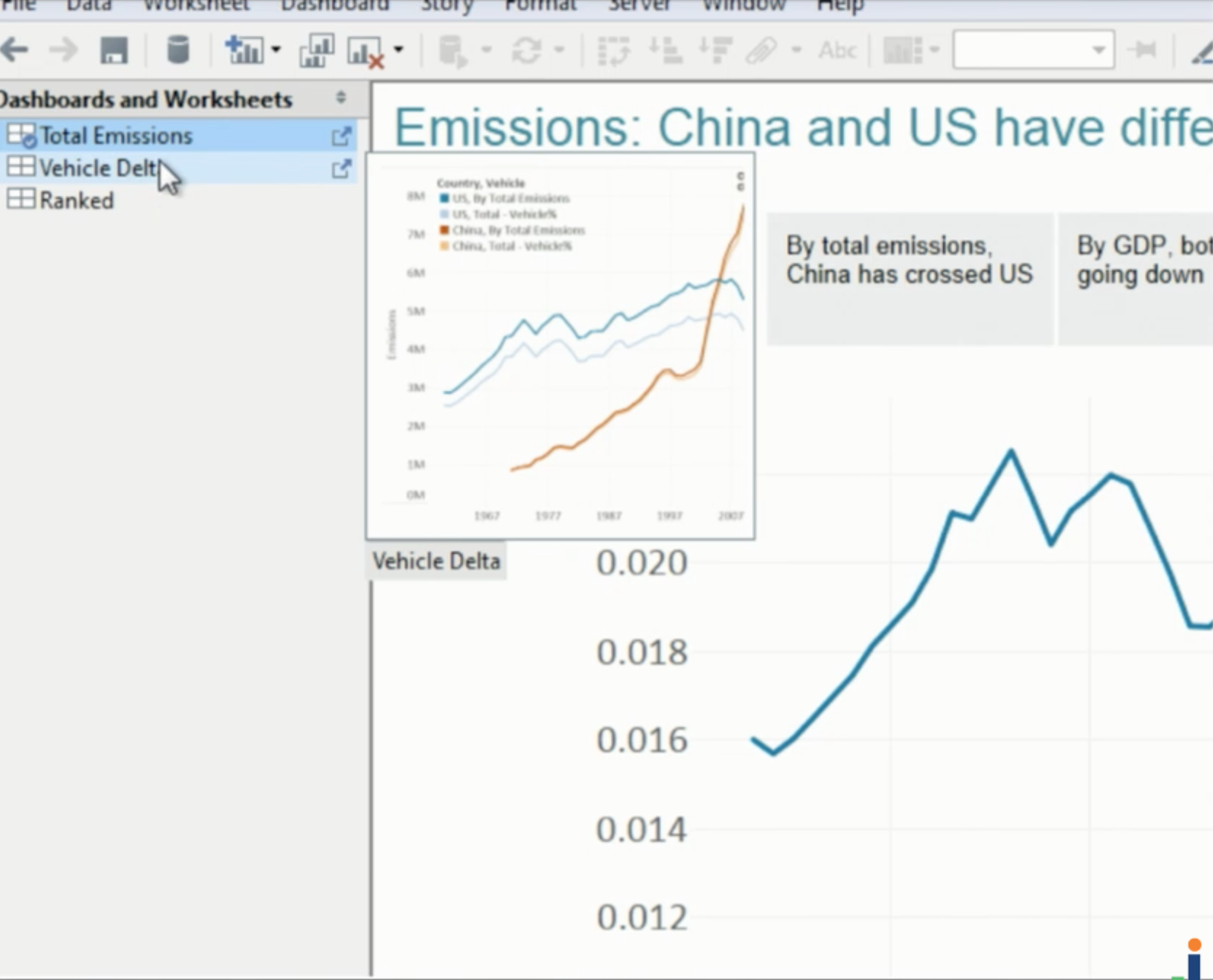 In worksheets with multiple worksheets and dashboards, it is sometimes difficult to find which charts to add to the story. To facilitate this process, thumbnails are being added.