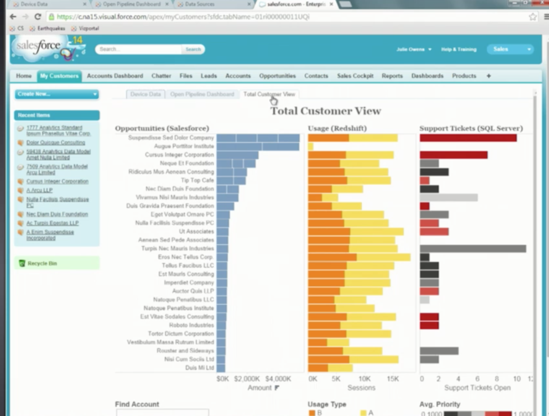 It is important to provide the ability to push dashboards to wherever they are needed. Recently the ability to embed interactive dashboards into salesforce was added. Now an add-in has been released that works with heroku and the salesforce canvas toolkit. All visualizations embedded in salesforce will be updated automatically.